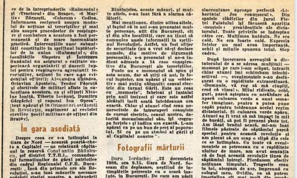 General Niculae Rizea also discussed the use of safe houses in Braila by the Securitate terrorists in an early 1990 interview:
