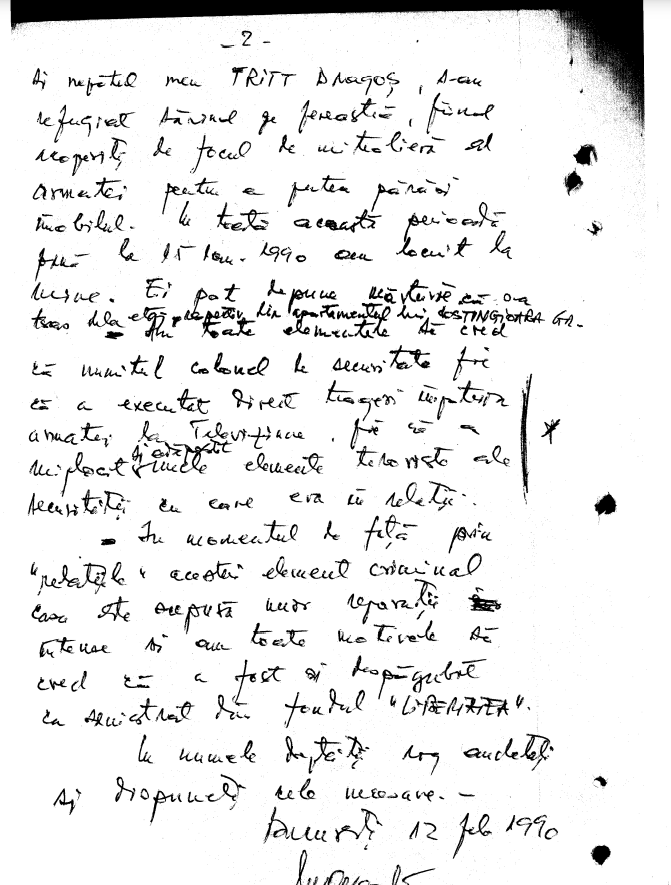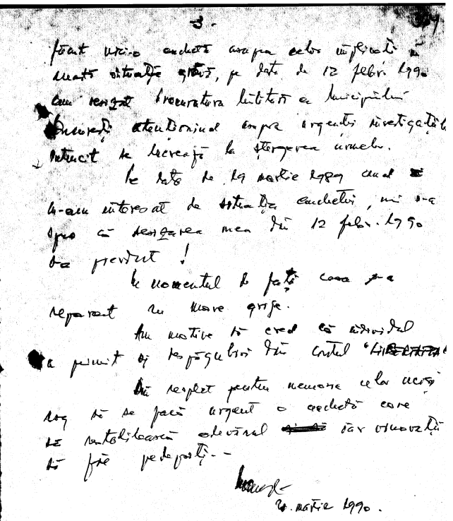 One thought on “Dosarul Revolutiei. The Past is Coming (14). Sesizarea (12.02.1990) si Declaratia (20.03.1990) lui ANDREI Gheorghe…cere urgent o investigatie la locuinta (Grigore Mora 16) lui COSTINGIOARA Grigore (LtC D.S.S. (r)) de unde s-a tras asupra Televiziunii intre 22-24…”intrucit se lucreaza la stergerea urmelor””