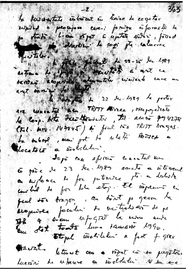 Within many of the documents in Dosarul Revolutiei, there lies a micro-history, an often moving personal story. Here one can palpably feel the urgency of Gheorghe Andrei, as he tries in vain, apparently, to get the military prosecutors to conduct an investigation into the living quarters of a former Securitate Lt. Col. Grigore Costingioara, from where Costingioara and his son were suspected of firing on the TV station in December 1989. Why? Because they are renovating the location to “remove traces” of their counterrevolutionary activity. One can only wonder, how many times similar things transpired in early 1990? How many people saw the cover-up in train, and either wanted to say something or feared saying something? This Gheorghe Andrei tried.