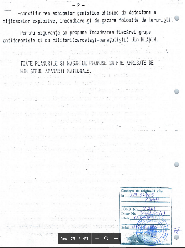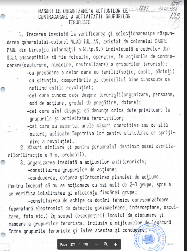 “Masuri de Organizare a Actiunilor de Contracare a Activitatii Grupurilor Teroriste” (nedatat, 26.12.1989?; inregistrat, “23.03.1990”)