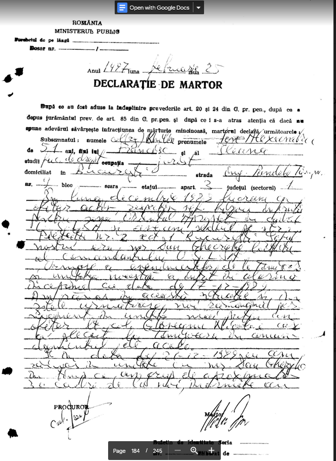 Alexandru Chilin (aka Kilin), ofiter USLA, declaratie, 25 februarie 1997:
