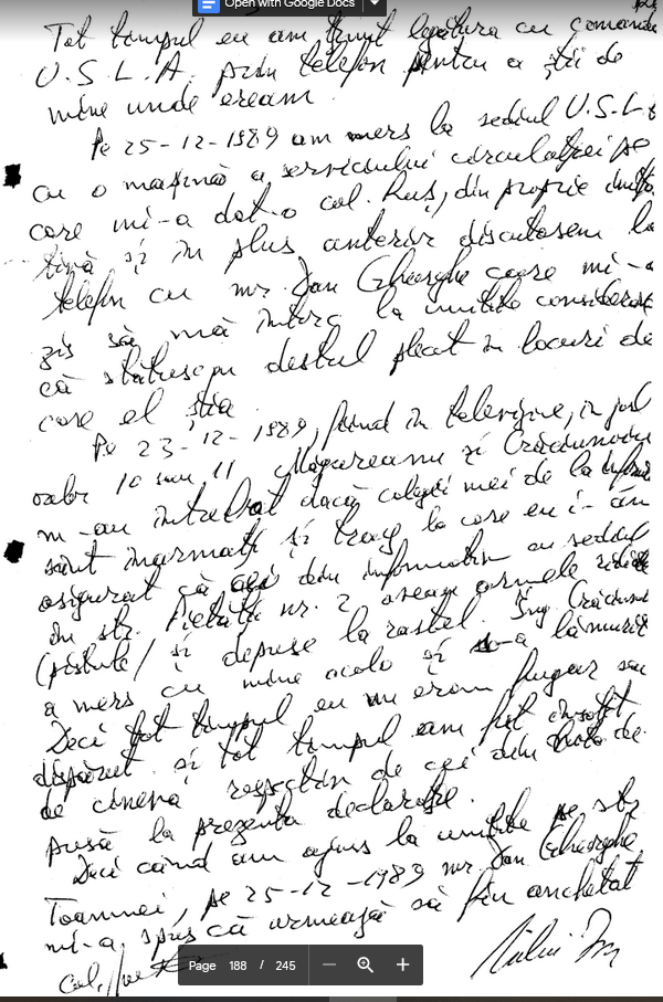 “Pe 23-12-1989, fiind la televiziune, in jurul orelor 10 sau 11, Magureanu si Craciunoiu m-au intrebat daca colegii mei de la Informatia [din USLA] sint inarmati si trag…”