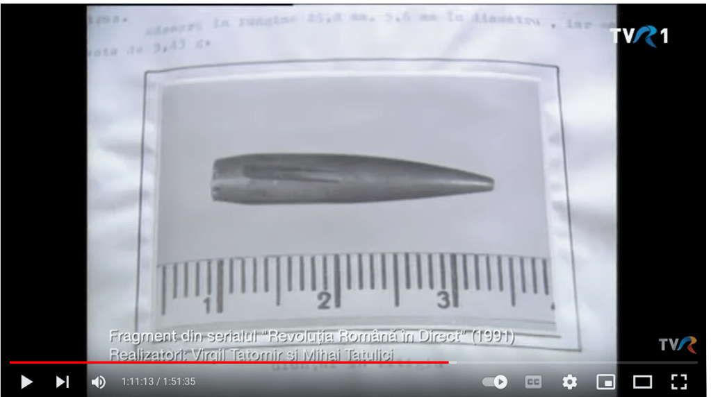Decembrie Roşu: Dezvăluiri în premieră din „Dosarul Revoluţiei” (@TVR1), 22.12.2022 2200…secventa 1:10:39-1:11:16…Mihai Tatulici povesteste ca…i-a trimis de catre SRI-ul lui Virgil Magureanu un consilier…Filip Teodorescu (fost Securist)…dupa episodul cu Voican Voiculescu (nota august 1991)…urmeaza un fragment din ’91 cu gloante trase de teroristi, calibru 6,5 mm, Stecikin (geanta diplomata la Sibiu), si 5,45 mm…spune Tatulici…Teodorescu vrea sa protejeze pe Armata!!! (cu fotografiile, snippet din filmul acesta)