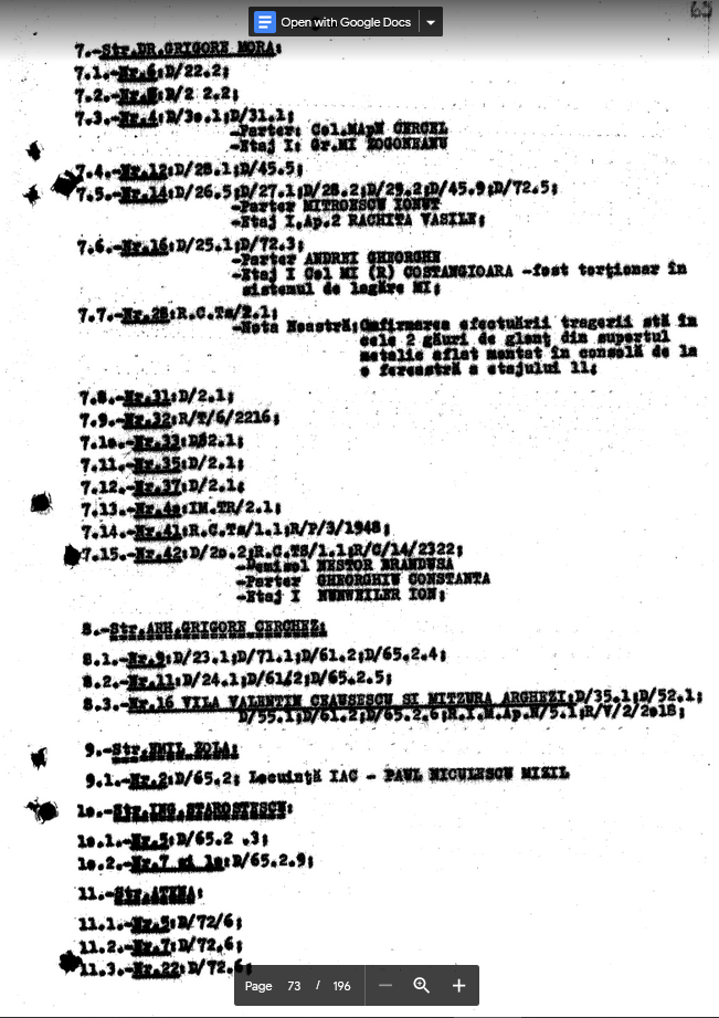 In pt. 5, Baltei says the “grupuri de rezistenti” also have at their disposal a center for surveilling telephone calls in the area (and possibly in the rest of the capital he surmises). He then says that phone calls the resistance groups don’t like are blocked, and recounts how earlier he tried to call the Defense Ministry to give the details outlined in this letter, but his phone was blocked and was permanently out of service thereafter.