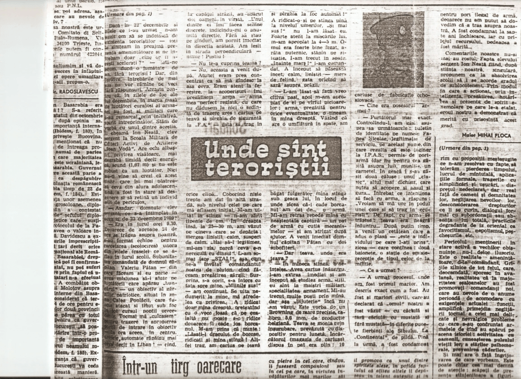 Ion Neata, interviu luat de Mihai Floca, “Unde sint teroristii?,” Armata Poporului, nr. 30 (25 iulie 1990), p. 3.”