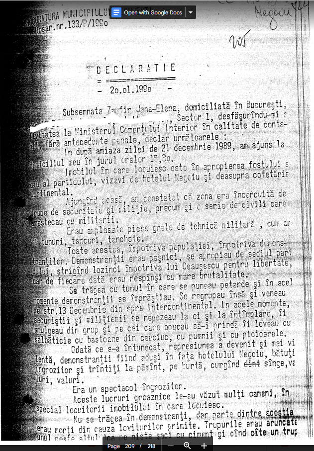 Dosarul Revolutiei. The Past is Coming (12). Declaratia Maior-ului Ion Gheorghe Apostol (12.01.1990). “Cu mine s-a deplasat pe holul de la etajul intii colonelul Lazarescu din Directia a V-a…Daca pina in acel moment elementele teroriste executau foc din afara asupra oricarui loc unde se observa o miscare de militari, de aceasta data asupra noastra, nu s-a executat nici un foc de arma…”